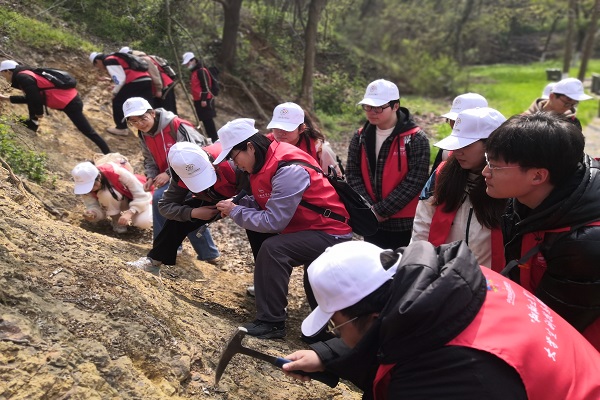 牛漫兰教授带领同学们参观了地质学科当中典型的地质剖面,并进行了详细的介绍和讲解。她分享了地学科研工作者的“苦”与“累”、“美”与“乐”,讲述了地学科研工作者“缺氧不缺精神,艰苦不怕吃苦”“心中有信仰,脚下有力量”的高尚情怀和“以脚丈量高原,为国寻找矿藏”的责任担当。她勉励同学们树立远大理想,勇于担当责任;练就过硬本领,涵养高尚情怀;不怕艰难险阻,锤炼意志品质。她希望同学们矢志工业报国,传承地学精神,争做地学栋梁,为建设社会主义现代化强国贡献青春力量。