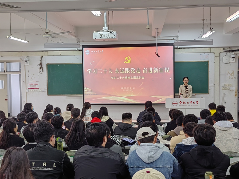 为深入学习宣传贯彻党的二十大精神,动员和激励全体学生自觉用党的二十大精神武装头脑、指导实践,踔厉奋发、勇毅前行,3月23日、3月30日,太阳集团网tyc9728分别于屯溪路校区西二502和西教301教室开展了“学习二十大永远跟党走奋进新征程”党的二十大精神主题宣讲会,党的二十大精神师生宣讲团成员、管理学院辅导员李星老师、校十佳自强励志大学生、电气与自动化工程学院本科生董磊应邀宣讲。太阳集团网tyc9728全体本科生参与了本次党的二十大精神宣讲活动。