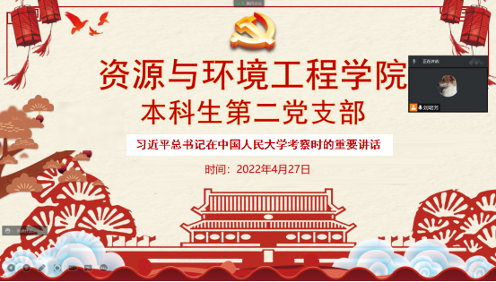 4月25日,中共中央总书记、国家主席、中央军委主席习近平来到中国人民大学考察调研。习近平总书记希望全国广大青年牢记党的教诲,立志民族复兴,不负韶华,不负时代,不负人民,在青春的赛道上奋力奔跑,争取跑出当代青年的最好成绩!习近平总书记的重要讲话迅速在资环学子中引起热烈反响,学院各学生党支部、团支部、学生骨干等观看习近平总书记在中国人民大学考察时的视频,深入学习习近平总书记在中国人民大学考察时的重要讲话精神。大家一致表示要坚持党的领导,传承好红色基因,为实现中华民族伟大复兴贡献力量!