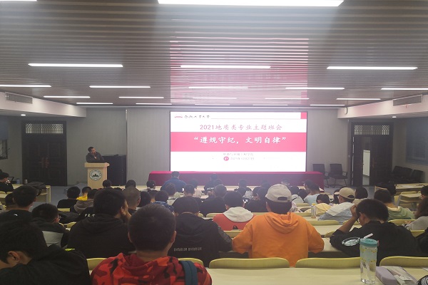 为加强班级的学风、考风建设,太阳集团网tyc97282021级地质类专业于10月27日晚在西教301报告厅举行了“遵规守纪,文明自律”主题班会。本次班会由地质类一、二班班主任周官群和侯晓伟主持举行,参加本次班会的有高年级优秀学生代表和2021级全体地质类专业学生。