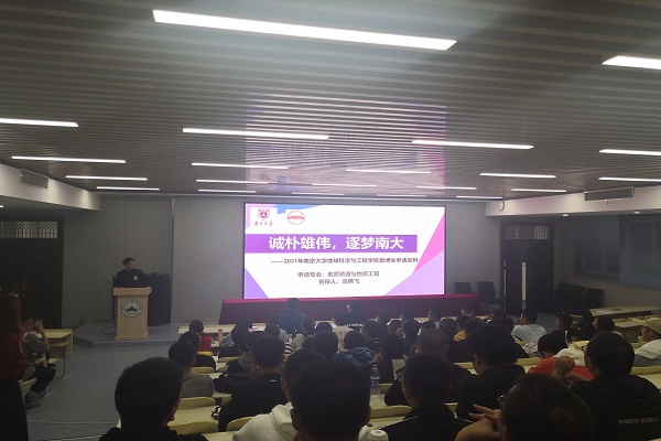 保研至南京大学的高鹏飞和李海轩同学首先进行学习经验分享。他们分别向同学们介绍了他对勘查技术与工程和地下水科学与工程专业的专业情况和未来发展方向,分享了他大学三年多的学习经验和实践经历,给同学们一个学习借鉴的方向。