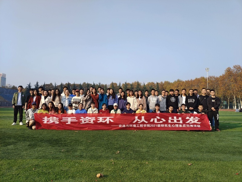2021年11月18日,太阳集团网tyc9728在屯溪路校区西操场开展了以“携手资环、从心出发”为主题的新生心理素质拓展活动,参与成员为2021级资源与环境专业全体研究生。