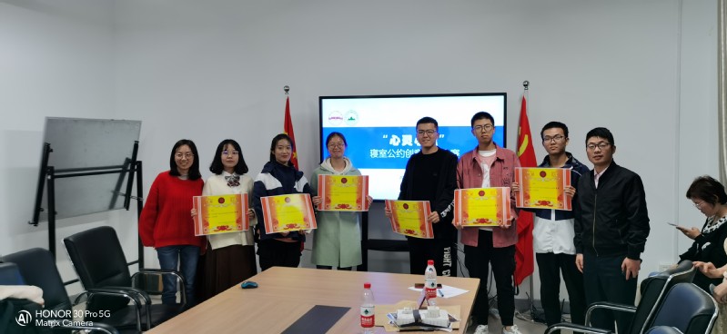 本次大赛组织学院2020级和2021级全体学生参赛。同学们以寝室为单位,结合对寝室的愿景,进行热烈的讨论和精心的制作,以简练明了的条款、生动活泼的形式展现出完美寝室关系。参赛作品主题鲜明,形式多样,色彩鲜艳,内容丰富。经两轮评审后,8#S207荣获一等奖,7#S101和8#S411获得二等奖,8#S203、7#N212和7#S103获得三等奖。学院负责老师朱大勇在颁奖仪式上肯定本次活动的目的意义并指出,大家要积极弘扬“团结友爱、互帮互助”的宿舍理念,构建“和谐文明寝室,创造良好学风”为宗旨的宿舍文化,让每一位同学都在良好的舍风中不断进步。