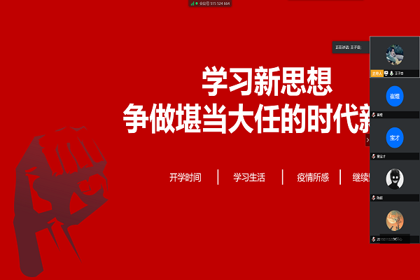 这次会议王子奇老师首先介绍了合肥的疫情与学校情况,把身边的例子分享给同学们,告诫同学们疫情虽有好转但还未结束,同学们仍需要注意安全;之后王子奇就疫情期间的舆论讲述了社会和国际方面的新闻及情况,并提醒同学们要学会辨别真实与谎言,在大是大非面前做成正确判断,坚持爱国爱党;最后王子奇老师以轻松诙谐的语气提醒同学们不要浪费在家时间,要尝试改变自己,在开学时给其他同学一个新印象。