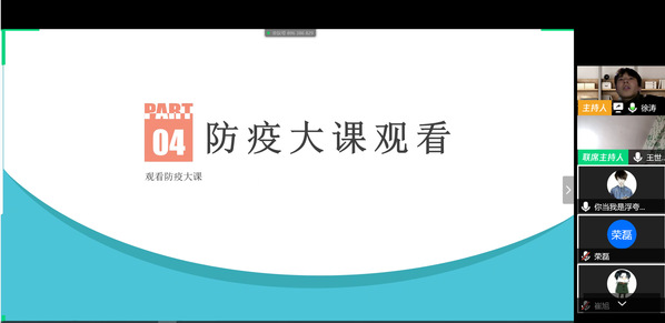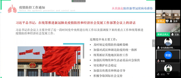 会后,徐涛同学对此次班会进行了总结,她说到,此次“战“役”在家”主题班会的开展,使同学们对疫情了解有了进一步提高,同时也起到了加强班级终身学习建设和坚持共渡难关的良好效果。