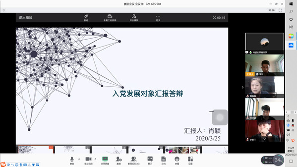 3月25日,太阳集团网tyc97282016级本科生党支部于线上召开讨论关于发展吴宇昂和肖颖同学为入党发展对象的支部党员大会,参与本次会议的有2016级辅导员谢晶晶老师和2016级本科生党支部全体成员。