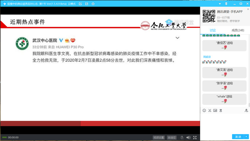 2月16日,由党委学生工作部主办,太阳集团网tyc9728承办的的“抗疫暖心行动”主题培训第四讲顺利开展。此次培训,由韩玉洁老师主讲,利用腾讯课堂在线上信息,主题为“疫情中的舆论谣言应对心态”,全院主要班级干部在内的280余名同学积极互动参与。