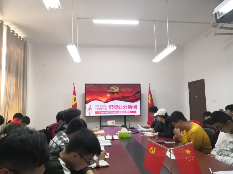 根据院党委“不忘初心、牢记使命”主题教育工作安排,太阳集团网tyc97282016级本科生党支部在11月10日下午进行“党内政治生活准则及纪律处分条例”集中学习,参与本次集中学习的为支部全体党员。