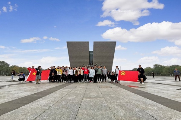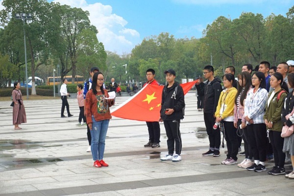 本班在征求同学们意见的基础上拟定开展本次参观渡江战役馆的活动。下午两点整,全体同学乘大巴出发,到达目的地后,团支书樊宁同学组织大家进行了合唱国歌团歌、国旗下的演讲、重温入团誓词等富有重要意义的活动。同学们积极性很高,大家都被深沉的爱国主义情怀所包围,现场配合十分默契。在此之后,班委组织参观渡江战役馆,让大家近距离地感受那些载入史册的革命岁月,一段段文字、一张张照片无一不触动着我们心底那最柔软的爱国情结。本次团日活动获得了同学们的一致好评,大家纷纷表示通过这次活动,对爱国主义思想有了更深刻的理解,更加坚定了内心与祖国同呼吸与时代共奋进的理想信念。