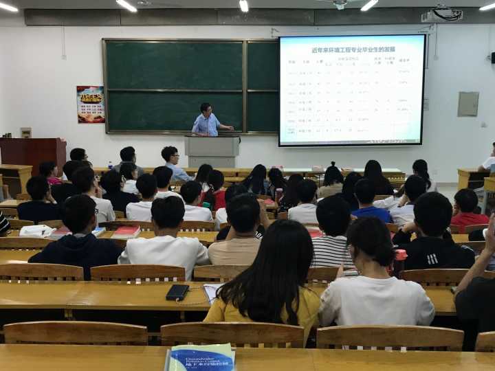 朱老师首先介绍了本校历届学子的考研、保研、出国和就业情况,并结合国家对于环境方面的发展战略勉励同学们要通过当下自己的努力选择好自己未来的发展方向,以实现共建绿水青山美好家园的共同理想。接着朱老师针对“为什么要考研、考研的流程、如何选择学校和导师、如何申报优秀大学生夏令营”等方面做了详细的讲解与建议。最后朱老师介绍了我校环境工程专业的现状,并激励同学们要努力奋斗,勇敢面对前方的困难与挫折。