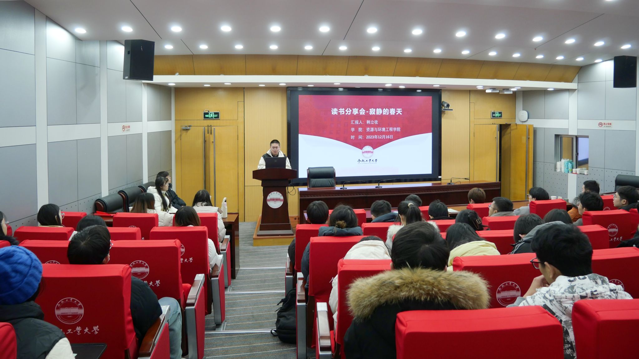 接着,机械学院高伦,资环学院代晨曦、齐路嫣、韩立收四位同学进行分享。高伦同学分享《七彩的灯光》一书,介绍了中国光学之父王大珩的人物生平、主要成就及其人物影响。代晨曦同学介绍了郯庐断裂之父徐嘉炜教授的人生经历,并针对《徐嘉炜论郯庐断裂》的书籍内容分享个人看法,呼吁大家学习勇攀高峰的创新精神以及潜心研究的奉献精神。齐路嫣同学从生平事迹和伟大贡献两个方面向同学们介绍了著名地质学家李四光先生,同时分享了《地质力学概论》的读后感,鼓励大家积极学习李四光的家国情怀,践行科学报国、兴国、强国的初心。最后,韩立收同学分享了环境学家蕾切尔·卡逊的著名书籍《寂静的春天》,简述了蕾切尔·卡逊女士的生平经历、贡献价值,以及《寂静的春天》的写作背景、成就影响等,重点分享了他的阅读感悟,号召大家向前辈不惧困难、尊重自然、保护环境的伟大精神看齐。