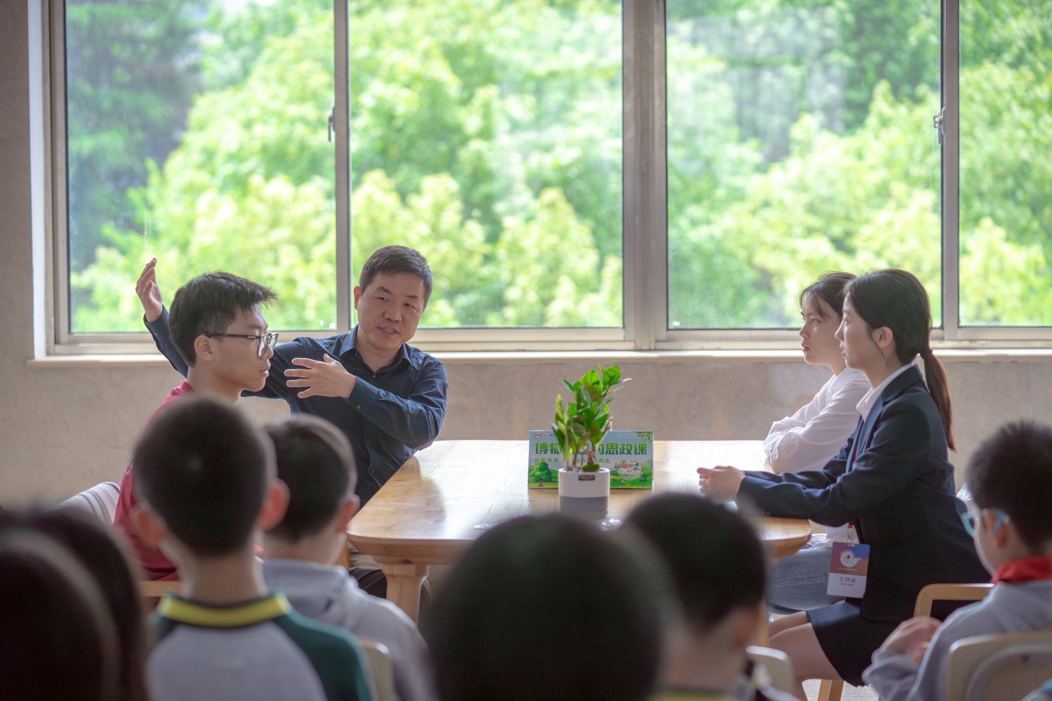 在地质博物馆,学院科普教师王志强带领同学们开展了一场别开生面的“思政课”。他结合自身在祖国山川的亲身实践,围绕地球生命起源及地质遗迹演化,从简单的化石、岩石样本到复杂的地质构造,带领同学们感受磅礴的地学精神力量。围绕学科发展脉络,从地质变迁历史到郯庐断裂带发现历程,从资环教师科研育人故事到地质学家奋勇争先的拼搏精神,带领同学们在展厅中逐步探寻科学前辈追求真理的决心和矢志不渝的报国情怀。随后,师生围坐在一起,就地球与生命起源演化、生态环境保护、传承科学家精神等方面展开了热烈的分享交流。