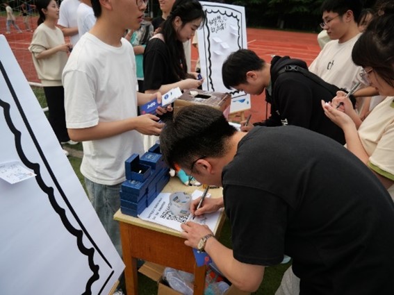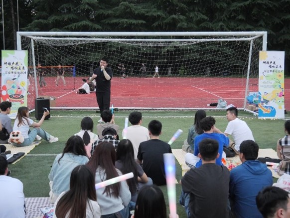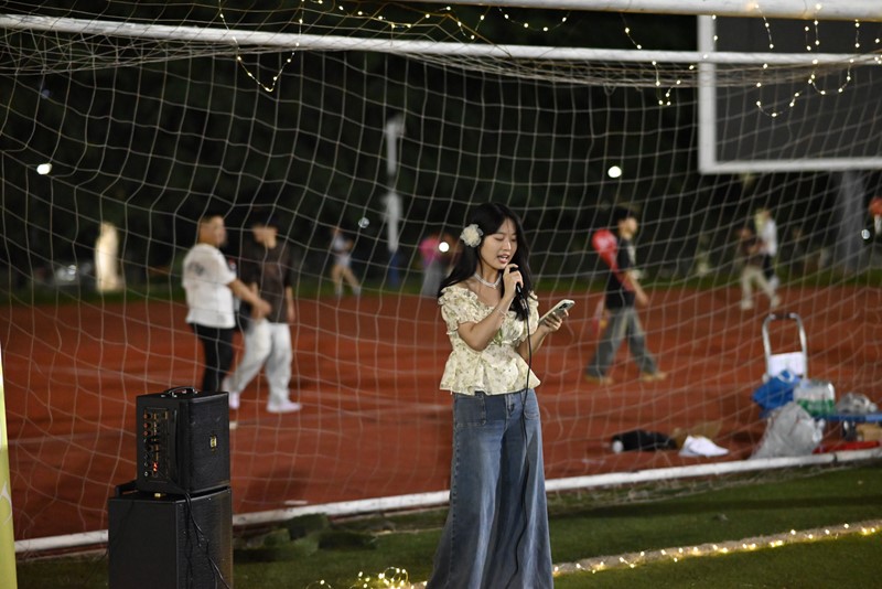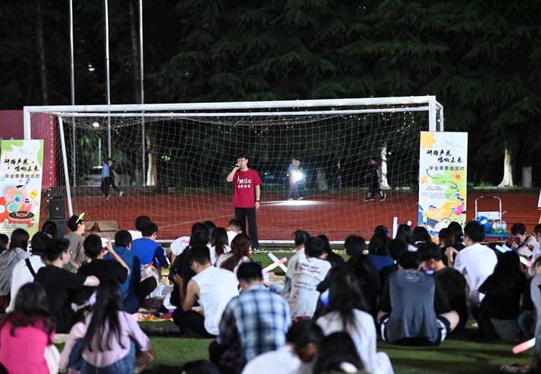本次活动由留言寄语、草坪歌会、整点抽奖等环节组成。活动开始前,现场师生用文字记录心情,用笔划传递喜悦,纷纷在留言板上记下对2024届毕业生的美好祝福,也许下了对自己未来的心愿。一首热烈激昂的乐曲拉开了草地派对的序幕。随后的《夜的第七章》和《我的未来式》更是将现场气氛烘托到高潮。正如歌词所唱“我的未来式由我做主,每一个动作我都完整投入,不断电的你陪我加速,奔跑在我们的领土”,饱含着同学们对师兄师姐奔向前程的鼓励与支持。节目表演过程中,还穿插了多轮抽奖环节。精彩纷呈的歌曲演唱与现场互动,让师生在科研之余稍作调整,尽享愉悦。在操场的星光下,伴着全场合唱的《知足》,这场属于2024届研究生的青春盛会圆满落下帷幕。