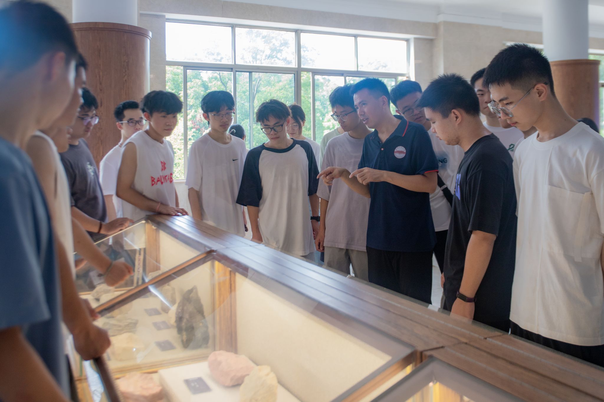活动中,学院科普导师徐利强、沈岳峰老师为同学介绍了我校地质博物馆馆藏状况以及将专业教育第一课放在地质博物馆的重要意义。随后,新生们在两位老师的带领下,分别参观了位于主教学楼的史前生命厅、地球物质厅、地球厅。校地质博物馆通过岩石矿物标本、资料图片、文字讲解、模拟场景等方式,生动地向同学们展示了地球从诞生至今的生命演化过程与地质变迁、地质资源的分布埋藏状况、矿物科普知识等。活动最后,两位老师寄语同新生们要以此次活动为契机,明确专业学习规划,扎实学好专业知识,为地学学科与地质事业发展贡献青春力量。