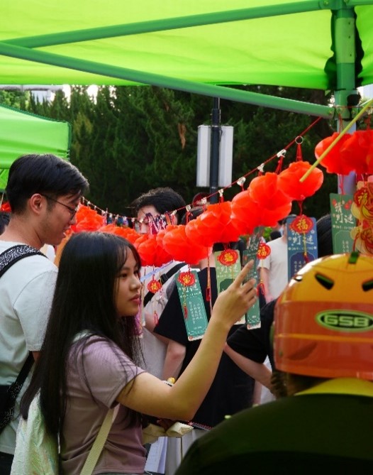 活动前期,研会成员忙碌而有序地布置着现场,他们或摆放桌椅,或悬挂灯笼,每一盏灯笼下都悬挂着精心准备的谜面,力求让每一处细节都充满节日的喜庆与文化的韵味,静待各位老师和同学们共解灯谜,共享中秋之乐。