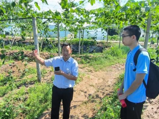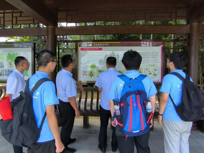 地质资源赋产能,特色景观促发展。7月4日,团队来到求知村,在村支书带领下依次参观了地质文化长廊、杨小屋化石点等地质文化景点,了解了郯庐断裂带,并观察求知村独特的龟类化石。在求知村的科普文化长廊前,指导老师邓宇峰和求知村村支书就求知村附近相关地质现象展开了细致的科普讲解。