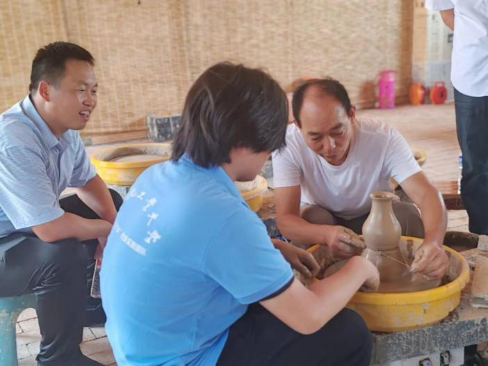 古陶技艺传至今,千年陶艺润心脾。7月5日上午,团队来到潜山痘姆乡,参观痘姆古陶非遗传习基地,对痘姆乡的陶瓷文化进行了深入了解,近距离观看痘姆古陶的制陶过程,并亲自体验制作陶瓷器具。在制作陶器的过程中,团队成员通过亲手操作,从初始的成型到后来瓷器上花纹的描绘,每一步都充满了挑战和乐趣。通过这次体验,团队成员不仅增进了对痘姆乡陶瓷文化的理解,也对传统工艺有了更深刻的认识。