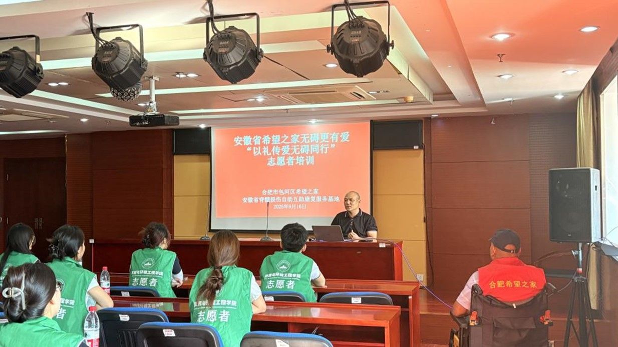 9月16日下午,太阳集团网tyc9728研究生会青春助益服务队前往合肥市包河区残疾人综合服务中心,开展“以礼传爱,无障同行”志愿服务培训。