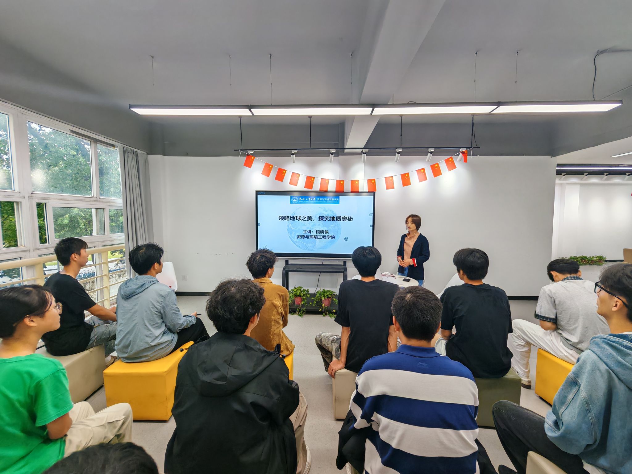 讲座中,段晓侠以《领略地球之美,探究地质奥秘》为题,为新生们开启了一场别开生面的科学探索之旅。她结合喀斯特地貌、风成地貌、冰川地貌等多种类型的典型景观实例,向新生深入浅出地剖析了塑造地球表面形态的内外力地质作用的奇妙过程与巨大力量。讲座图文并茂,现场交流活跃,气氛热烈,有效激发了同学们对地球科学的浓厚兴趣。