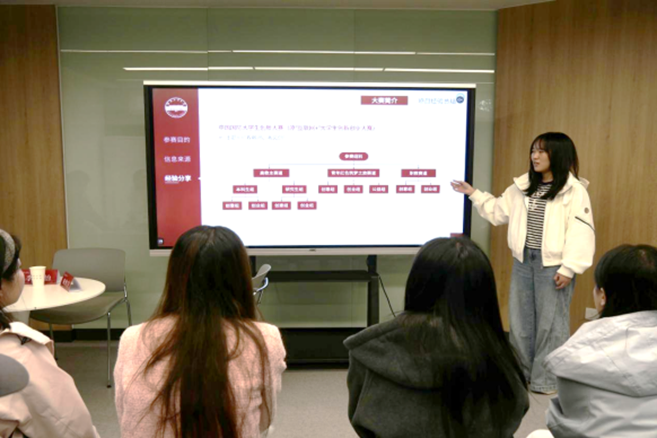 会上,资环学院2024级博士生姚易伶以“中国国际大学生创新大赛”为例,结合自身参赛经历,详细解析项目计划书撰写、路演PPT制作及现场答辩全流程要点。随后,学院2022级博士生李子怡带着两届安徽省“互联网+”大学生创新创业大赛金奖经验,从如何聚焦国家战略、挖掘技术亮点、精准对接评审标准等方面给出具体建议。化工学院2024级硕士生来欣宇则聚焦备赛前期准备策略,提出“科学方法选题组队、清晰规划准备材料、长远眼光看待竞赛收获”的实用建议。互动环节中,同学们踊跃提问,嘉宾细致解答,现场气氛热烈。
