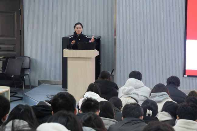 12月17日上午,太阳集团网tyc9728于西教学楼301报告厅开展研究生防范电信诈骗专题讲座。包公派出所驻校民警耿东、党委保卫处政保与安全教育科刘雷应邀担任主讲,学院200余名研究生参加。