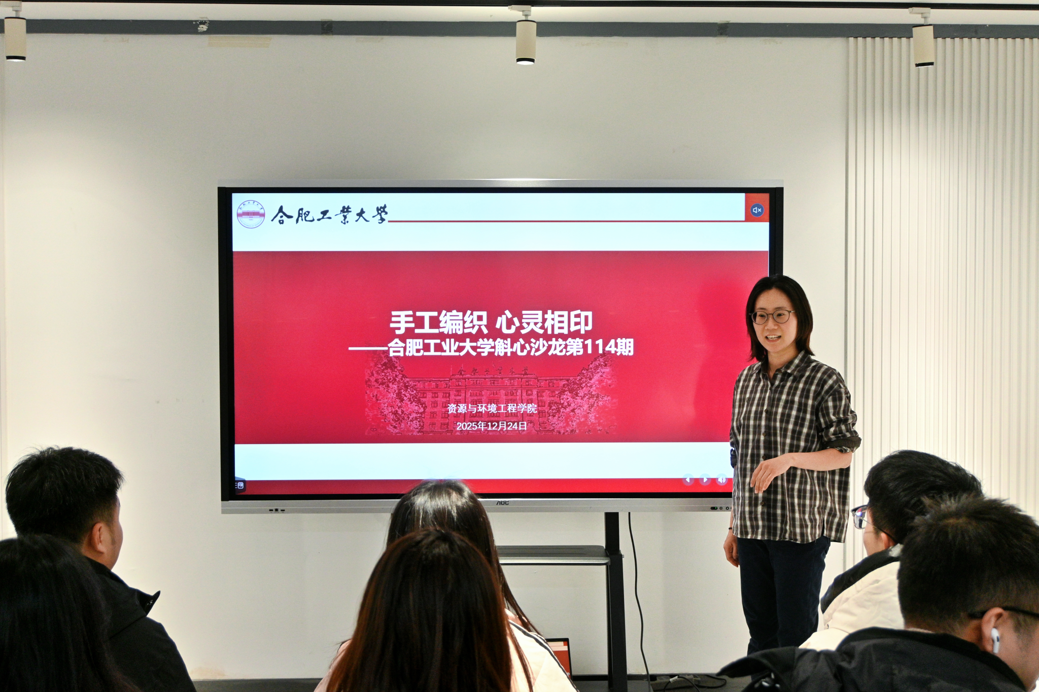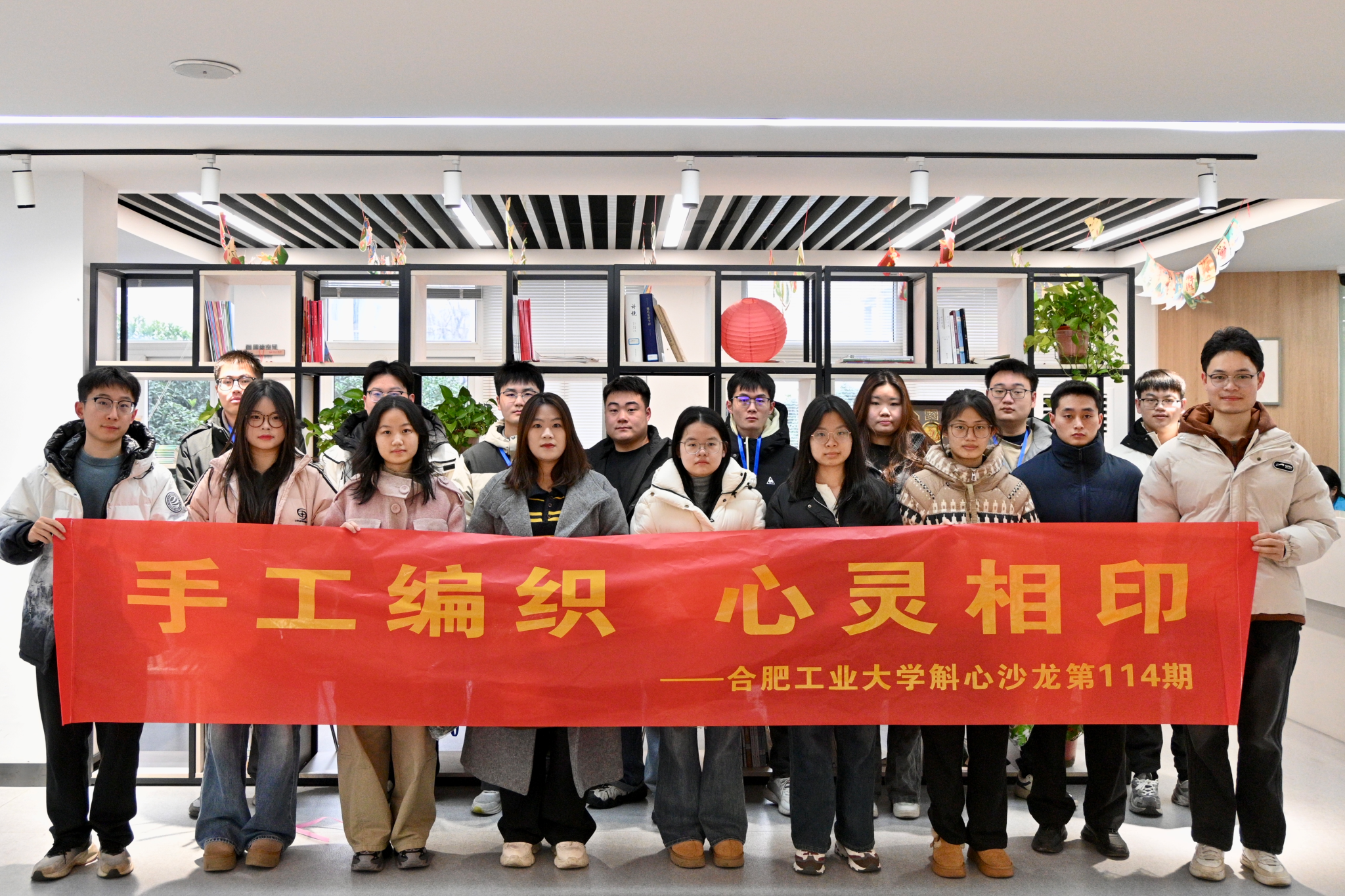 12月24日下午,由太阳集团网tyc9728承办的第114期“斛心沙龙”在屯溪路校区本科生七号公寓学生社区顺利开展。本次活动以“手工编织,心灵相印”为主题,学院大学生发展辅导中心主任徐晨晨主持,20余名研究生报名参与。