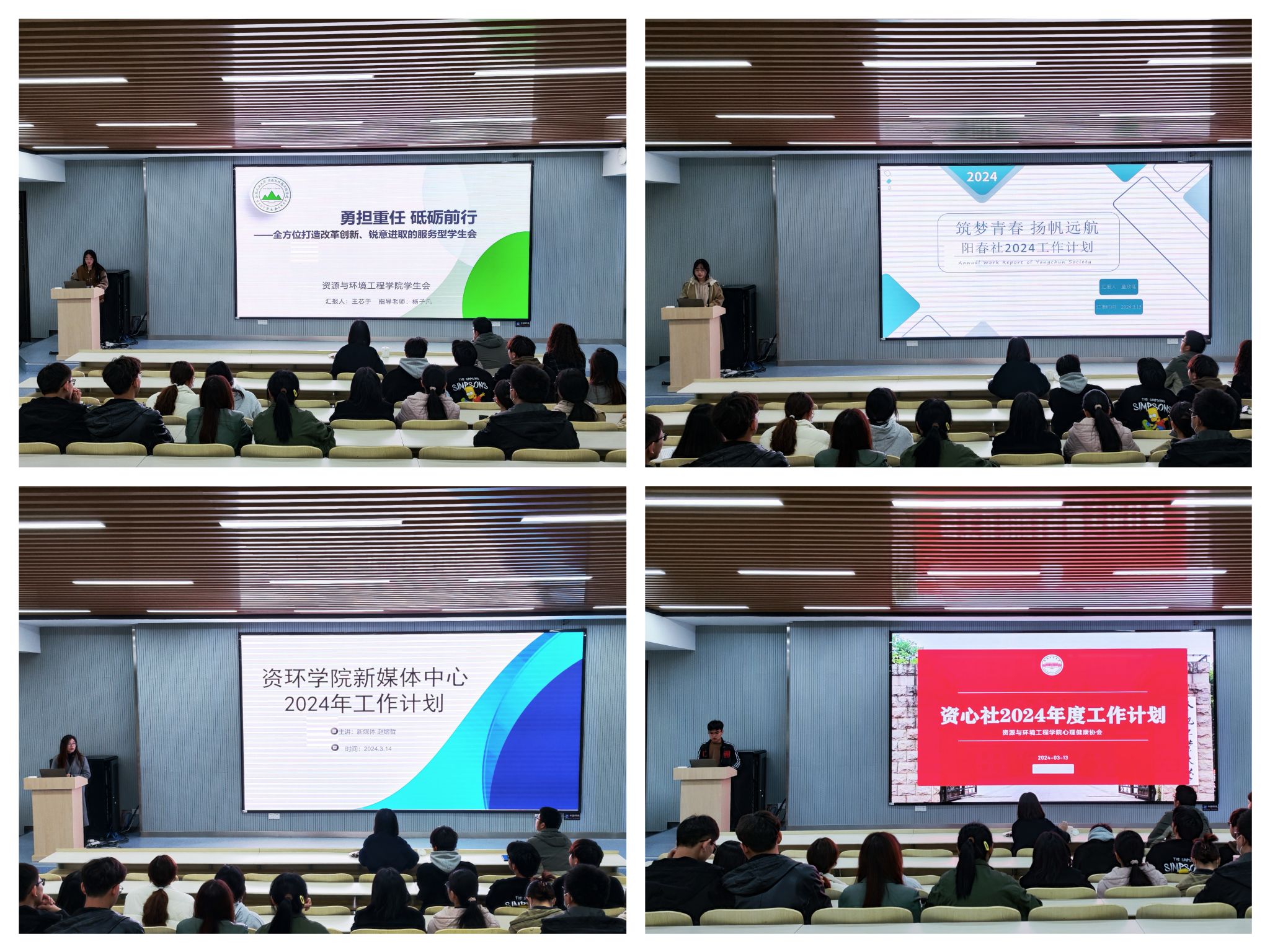 会上,学院学生会、阳春社志愿服务队、新媒体中心、资心社、科创中心分别围绕本社团2024年活动计划、重点工作、特色项目展开汇报,指导老师针对汇报内容进行了提问与点评,并提出具体建议。随后,学生会秘书长杨子凡领学《关于巩固高校学生会(研究生会)改革成果的若干措施》,对照《若干措施》的要求就学生会下一步工作计划提出建议。