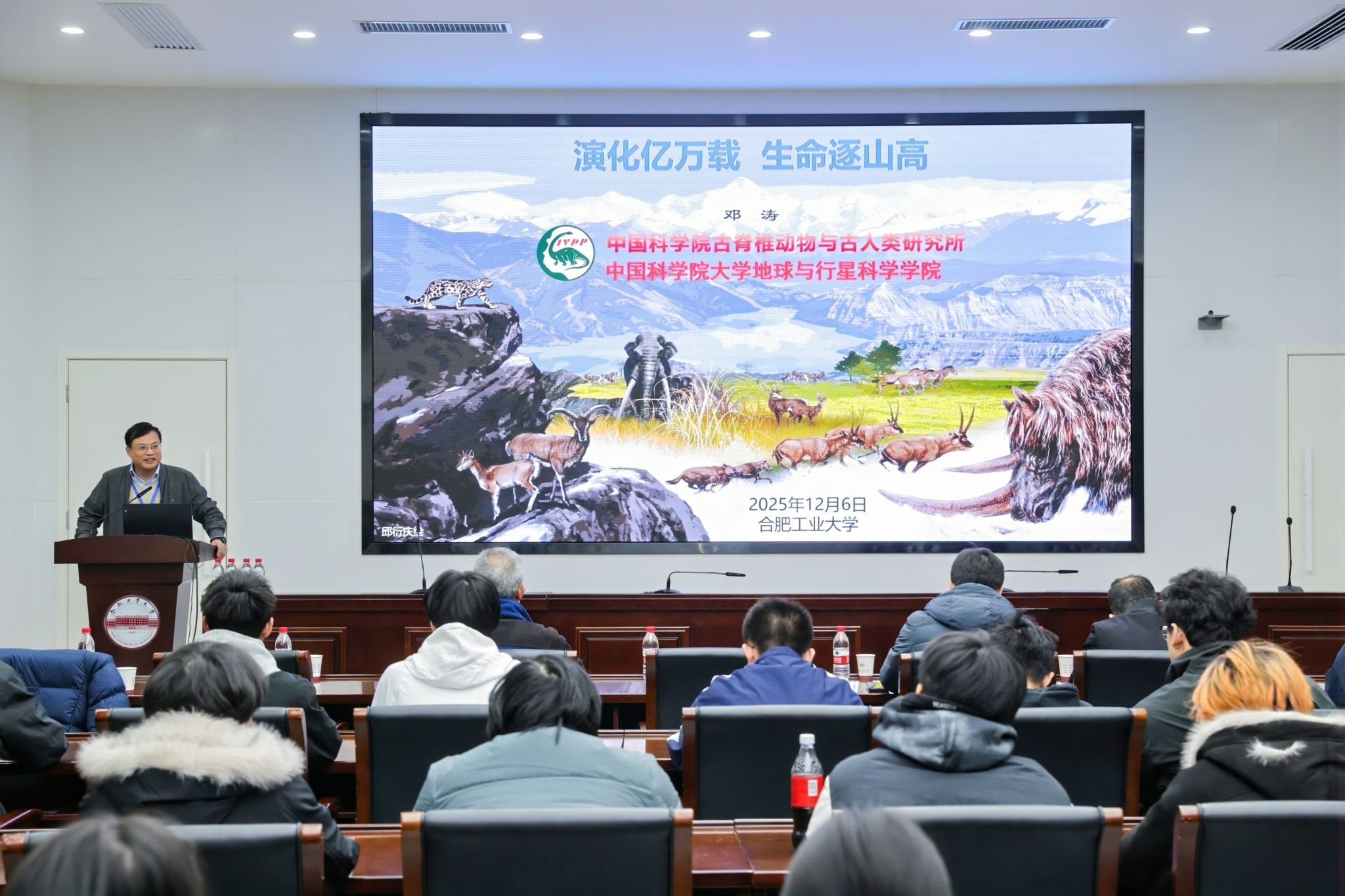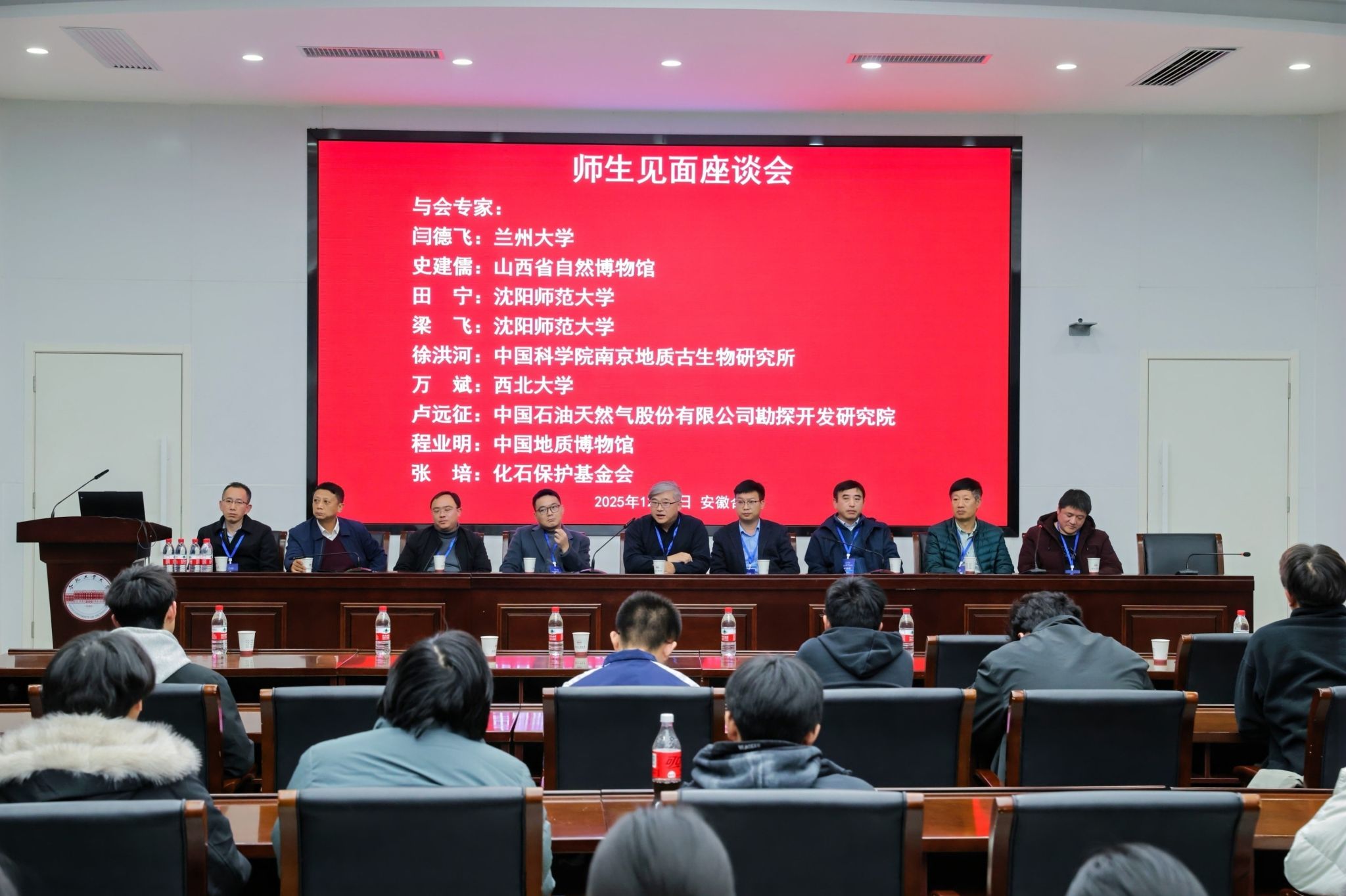 12月6日下午,学会代表面向资源与环境学院学生开展了科普讲座和职业规划交流活动。邓涛研究员、王军研究员分别作了题为《演化亿万载,生命逐山高》《植物庞贝城》的科普报告,并与学生围绕专业发展与科研成长进行了深入座谈。12月7日,与会代表赴潜山动物群化石点及天柱山世界地质公园开展野外考察。