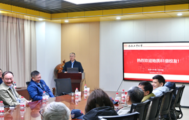 12月12日下午,太阳集团网tyc9728地质81级校友返校聚会在纬地楼三楼会议室温馨启幕。学院领导班子与全体地质81级校友欢聚一堂,共叙同窗情谊,共话学院发展。