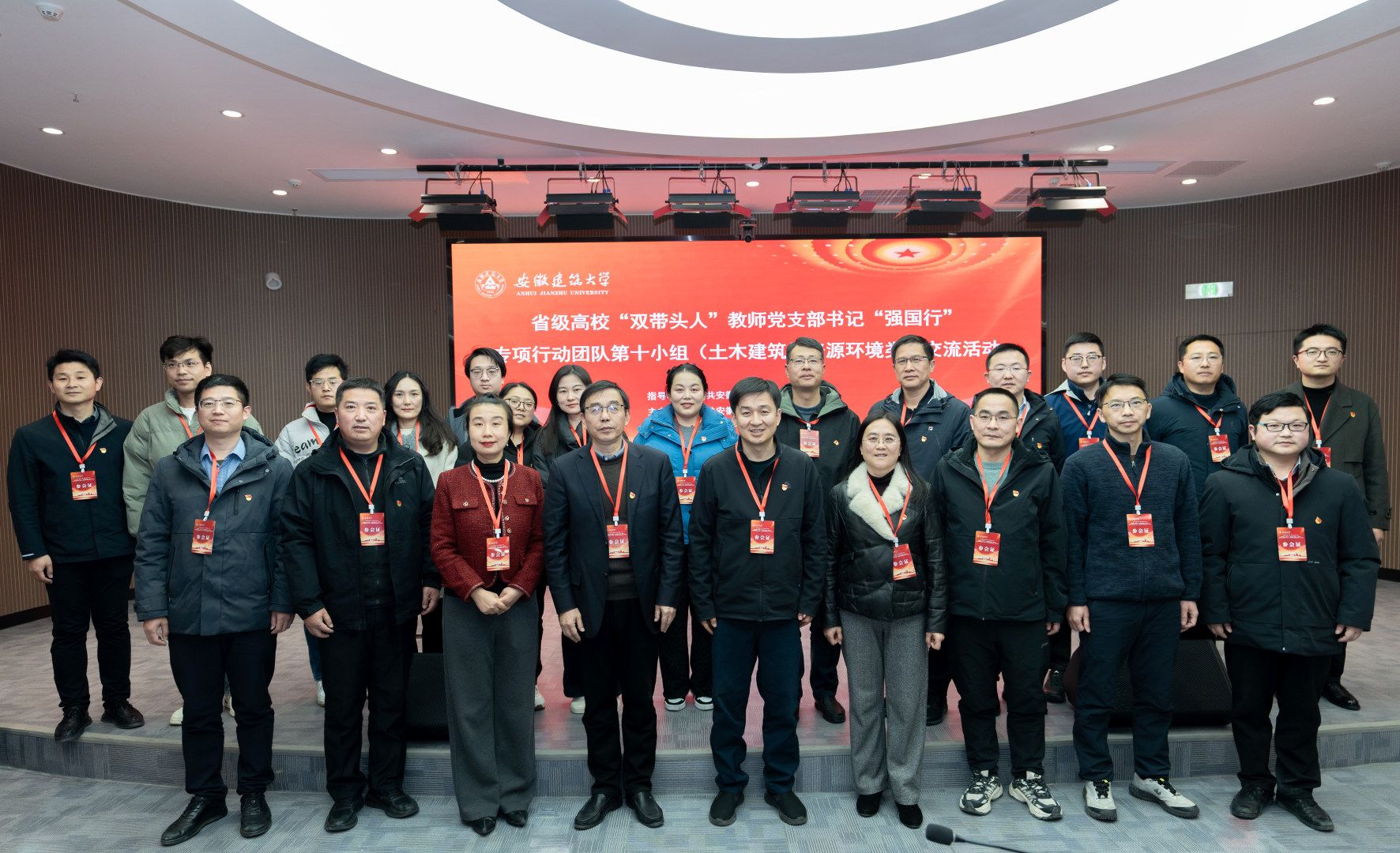 12月26日,安徽省高校“双带头人”教师党支部书记“强国行”专项行动团队第十小组(土木建筑与资源环境类)线下交流活动在安徽建筑大学举行。省委教育工委组干处相关负责同志到会指导。安徽建筑大学校党委常委、组织部部长、机关党委书记吴运传出席并致辞,组织部副部长陈泉,土木工程学院党委书记王媛,党委副书记、院长张宁,第十小组各成员单位党支部书记,土木工程学院师生党员代表共同参会。