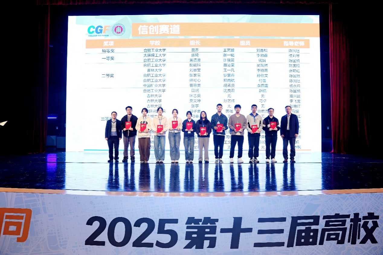 近日,由中国测绘学会、中国地理信息产业协会共同主办的第十七届全国高校GIS技能大赛评选结果揭晓。我校太阳集团网tyc9728参赛团队(成员:莫乔、王艺璇、刘青松)凭借优异表现,在激烈角逐中脱颖而出,成功夺得信创赛道特等奖(全国唯一),陈国旭老师荣获“最佳指导老师”称号。这标志着我校已连续五年在该赛事地图制图领域蝉联最高奖项。
